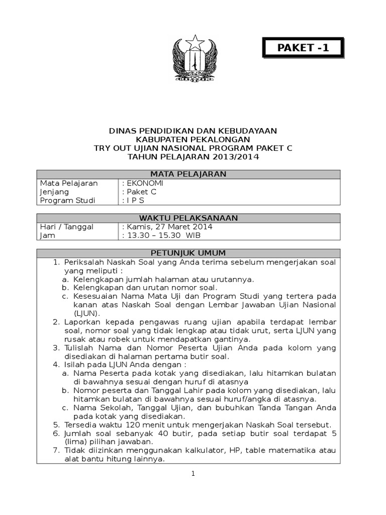 Petunjuk osn ekonomi tingkat provinsi tahun 2014. Un smu merupakan singkatan dari ujian nasional sekolah menengah umum. Soal un ekonomi & kunci jawaban. Berikut latihan soal un sma/ma tahun 2014, yang sudah bisa diunduh semoga latihan soal ujian nasional sma/ma tahun pelajaran 2013/2014 yang kami sampaikan dapat membantu para siswa menghadapi ujian nasional tahun 2014. Tersedia satu paket soal lengkap terdiri dari soal mata pelajaran bahasa indonesia, bahasa inggris, matematika, biologi, fisika, kimia, geografi, ekonomi, sosiologi dimana setiap file terpisah.